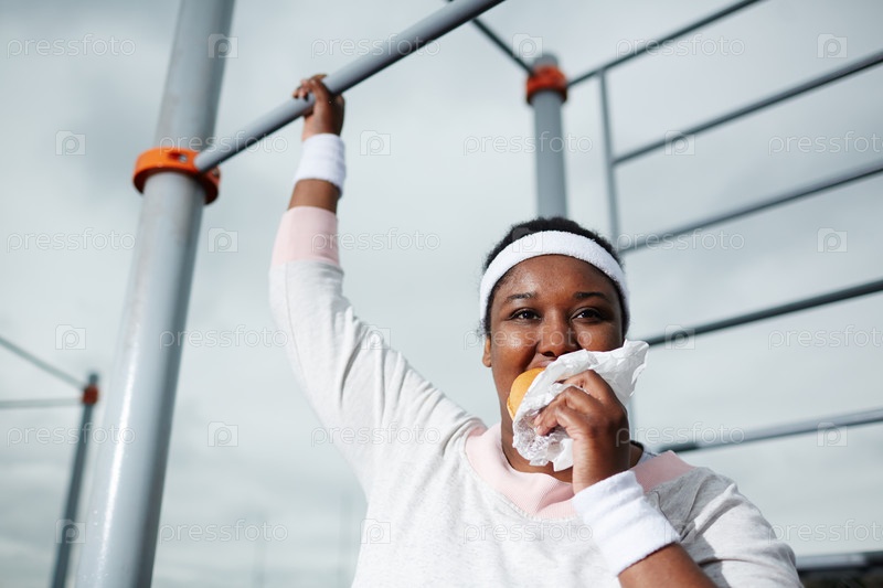Нездоровый гамбургер во время тренировки