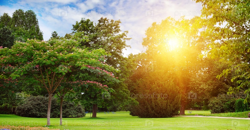 Красивый летний парк и восход солнца