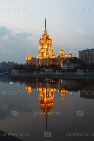 Сталинский небоскреб на набережной, ночь