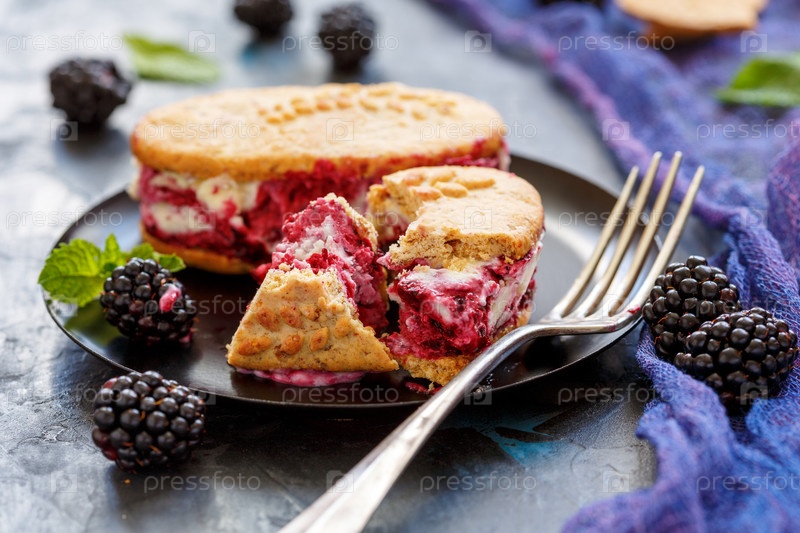 Домашнее печенье-сэндвич с мороженым и ежевикой