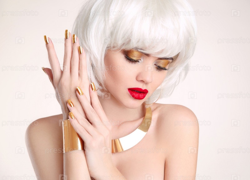 Блондинка с золотым маникюром