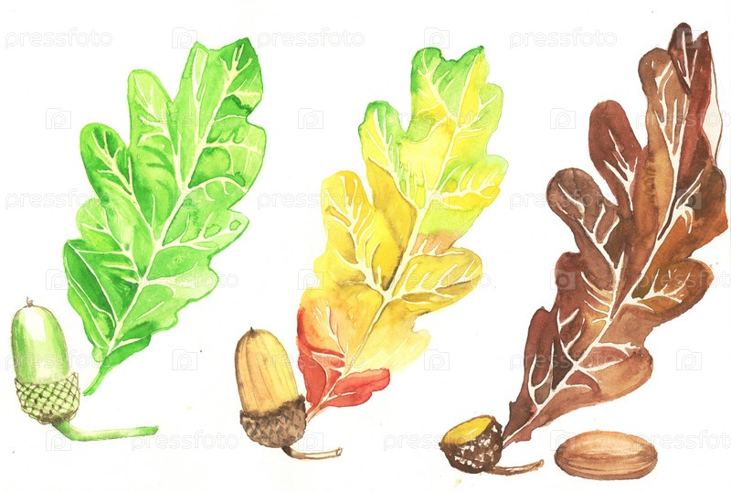 Набор дубовых листьев с желудями