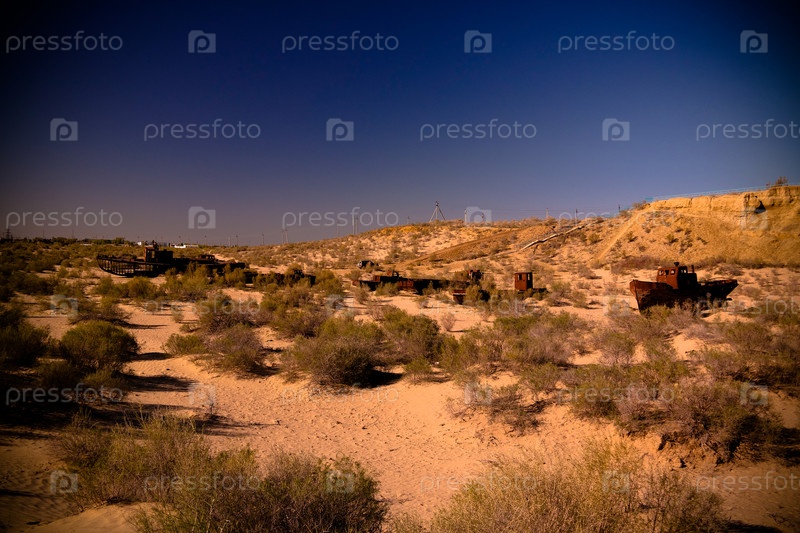 Кладбище кораблей на рассвете в Каракалпакстан, Узбекистан