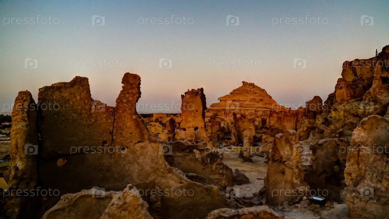 Старый город Шали и гора Дакрур в оазисе Сива на рассвете, Египет