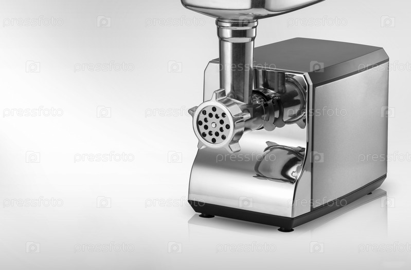 Современная электрическая мясорубка на светлом фоне