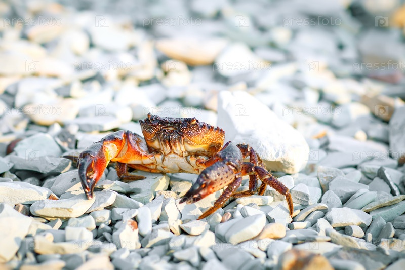 Морской краб на скалистом берегу моря