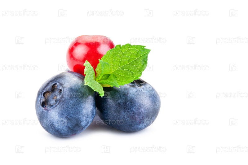 Голубика и красная смородина. Свежие ягоды с листьями