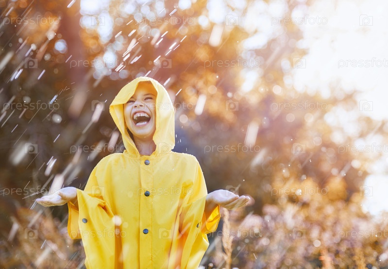 Ребенок под осенним дождем