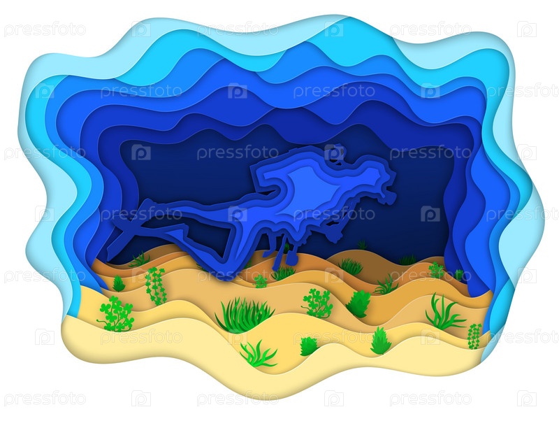 Аквалангист изучает морское дно