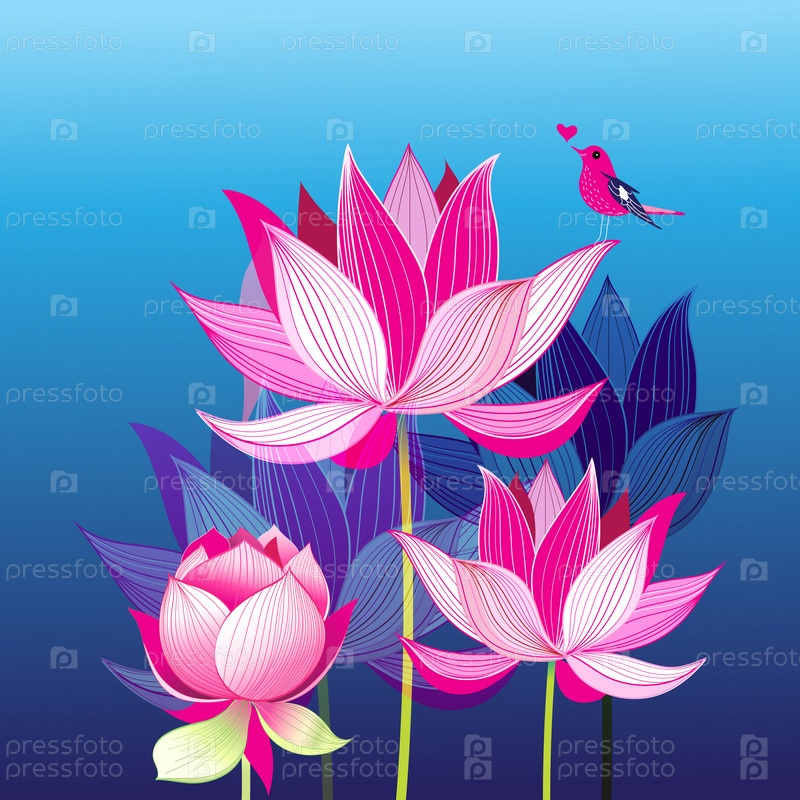 Розовые лотосы и птицы