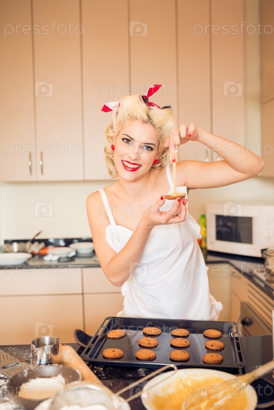 Красивая блондинка на кухне