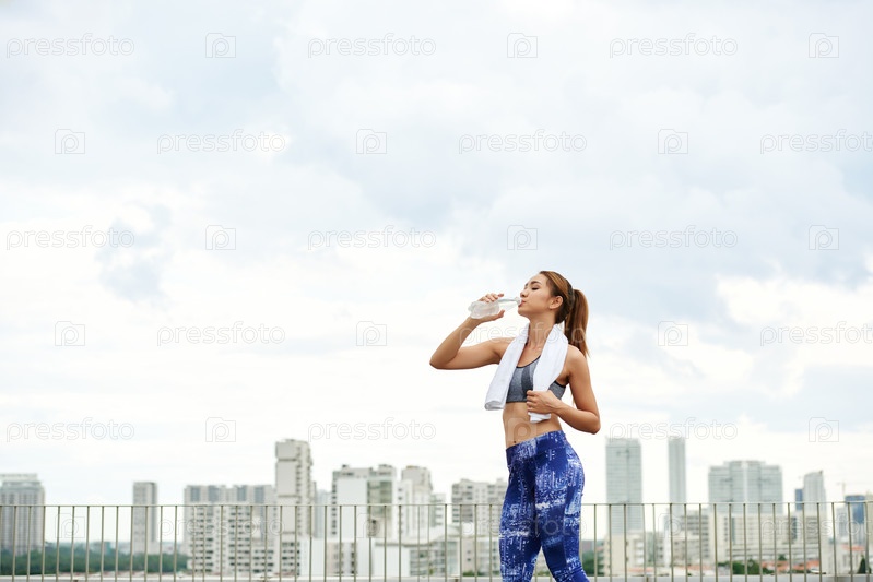 Спортсменка пьет воду