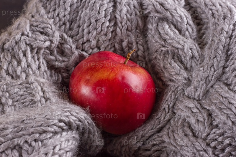 Красное яблоко в вязаной кофте
