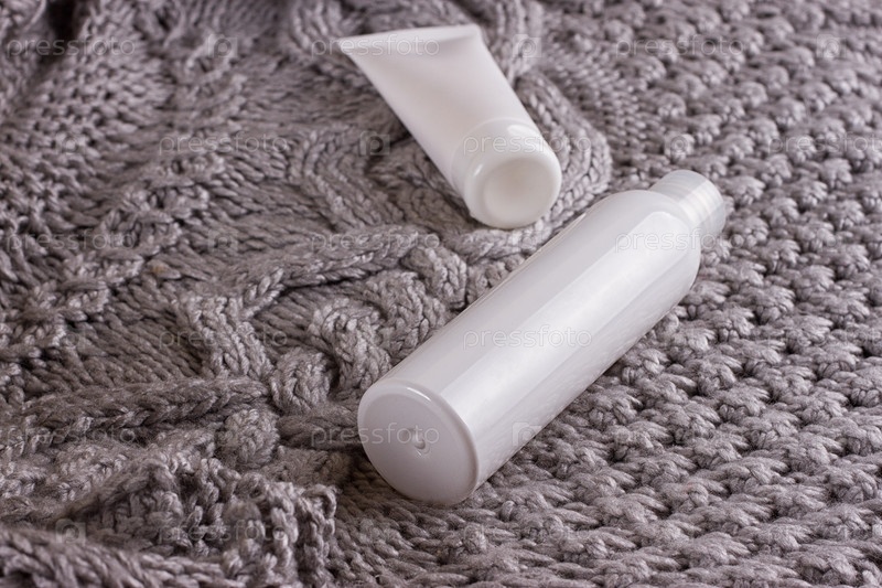 Косметические средства на вязаном свитере