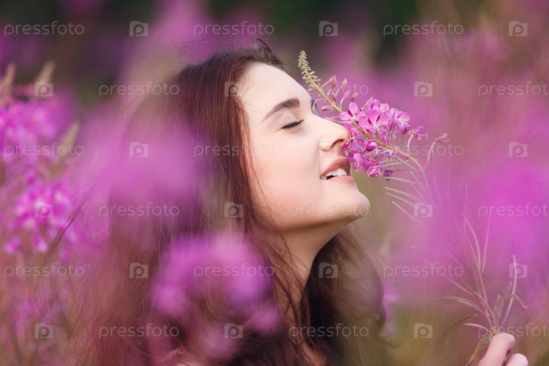 Молодая женщина в розовых цветах