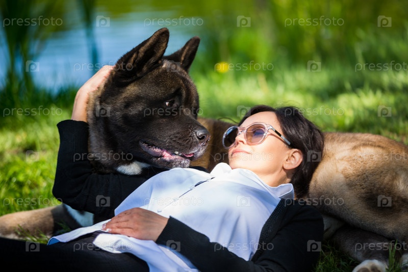 Женщина с американской акитой