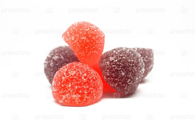 Сладкий и вкусный яркий мармелад на белом фоне
