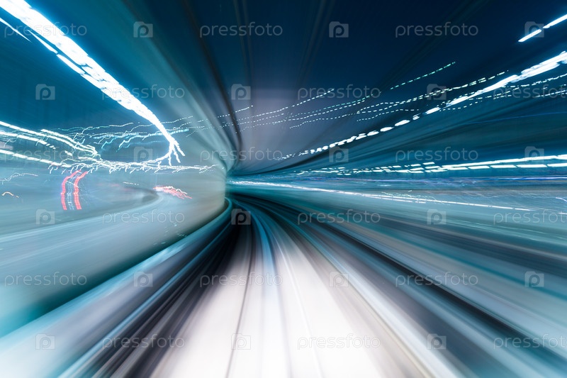 Поезд движется в тоннеле