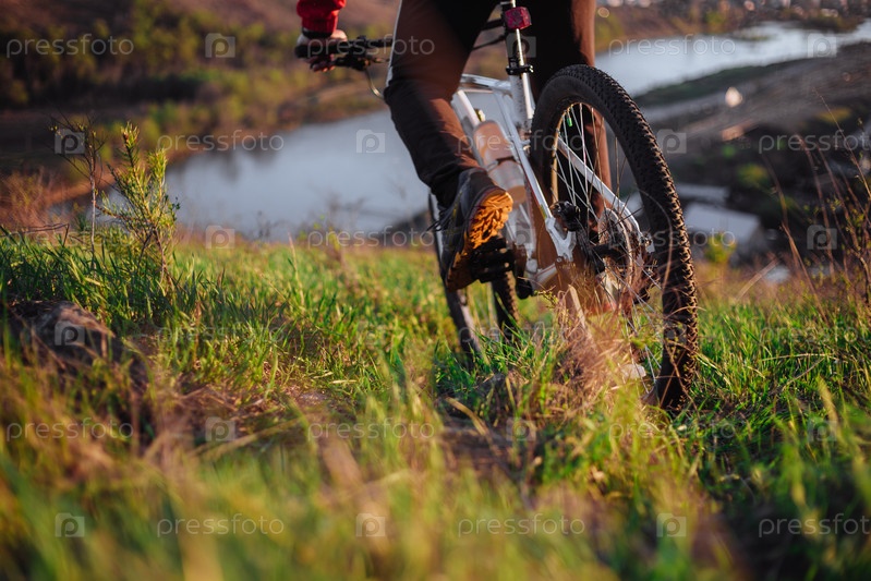 Велосипедист спускается с отвесной горы на горном велосипеде