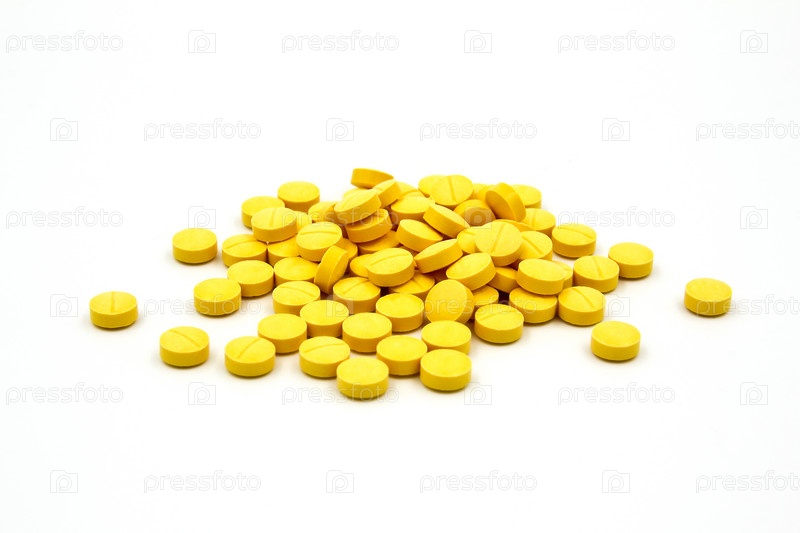 Желтые таблетки на белом фоне