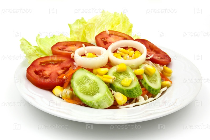 Салат из свежих овощей, изолированный на белом фоне