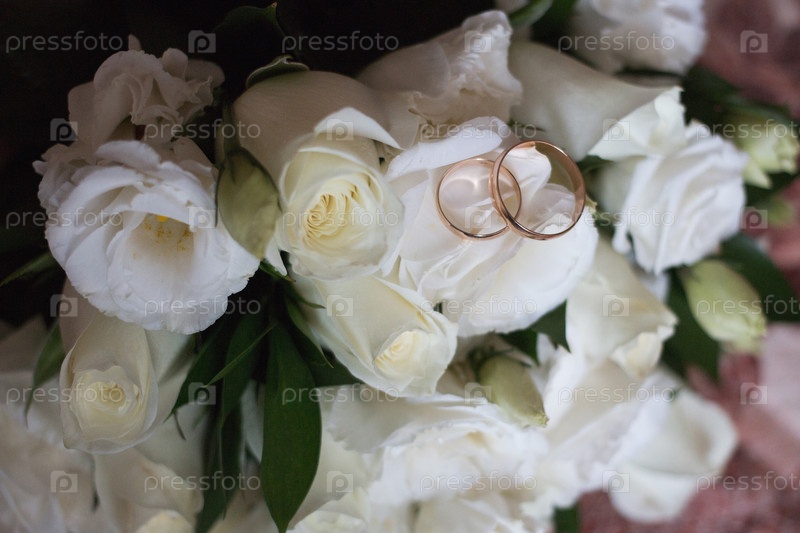 Красивый букет и обручальные кольца