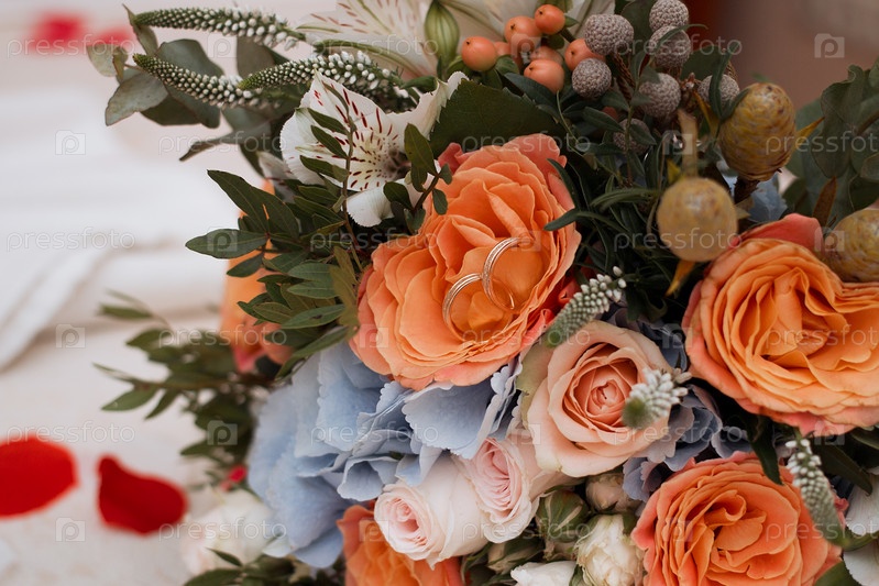 Красивый букет невесты и обручальные кольца