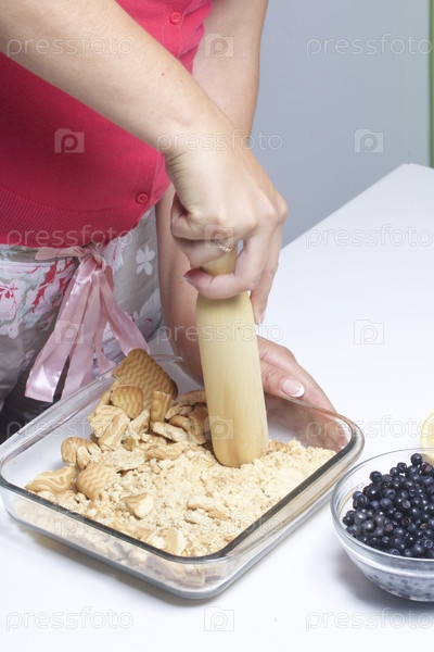 Женщина крошит печенье для теста