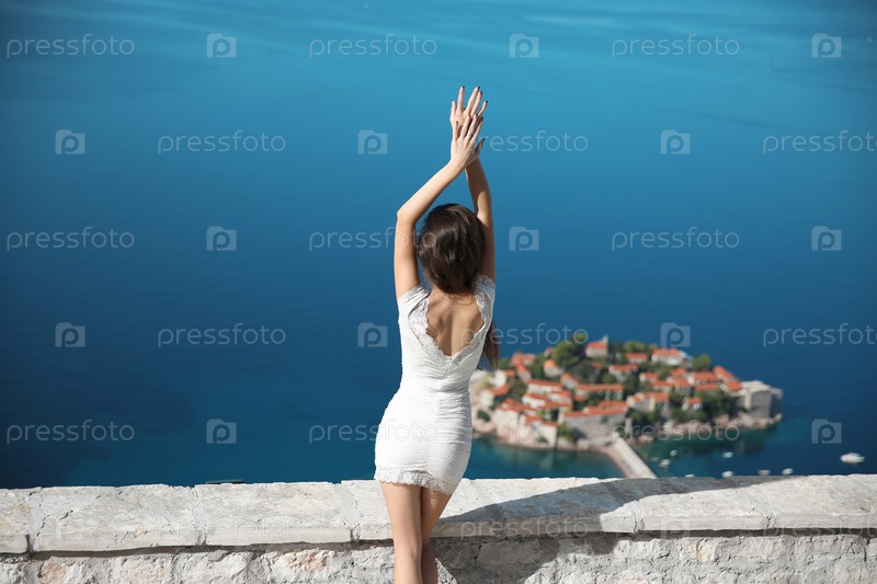 Женщина на Свети-Стефан в Будве, Черногория. Вс