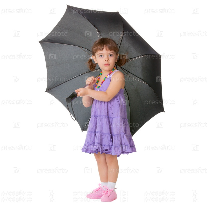 Маленькая девочка с большим черным зонтиком