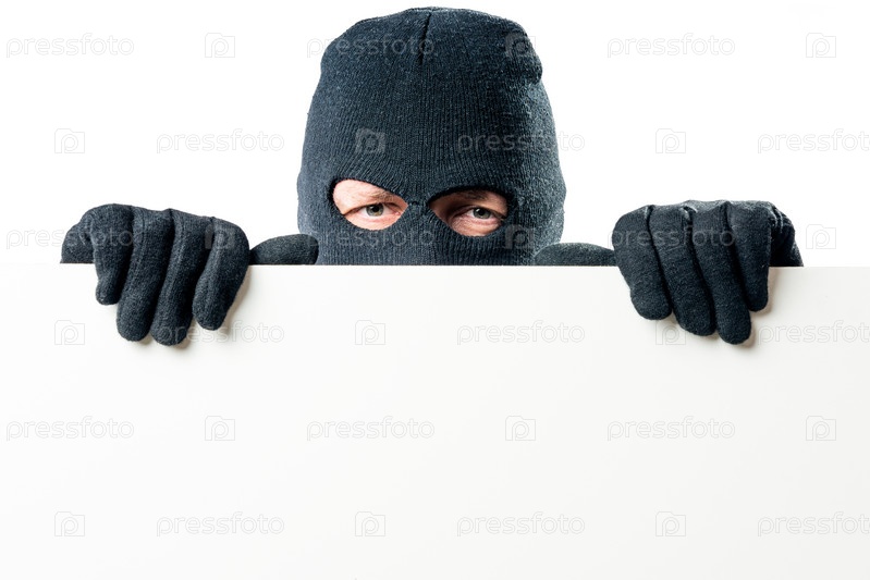 Портрет преступника в маске с большим плакатом