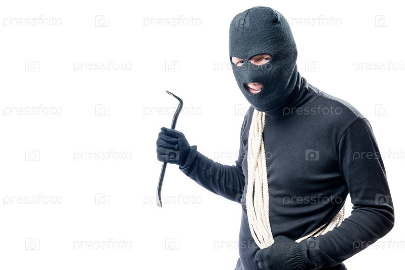 Грабитель с веревкой и ломом