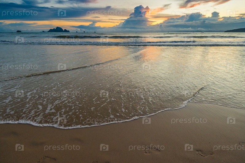 Следы на песке на краю пляжа