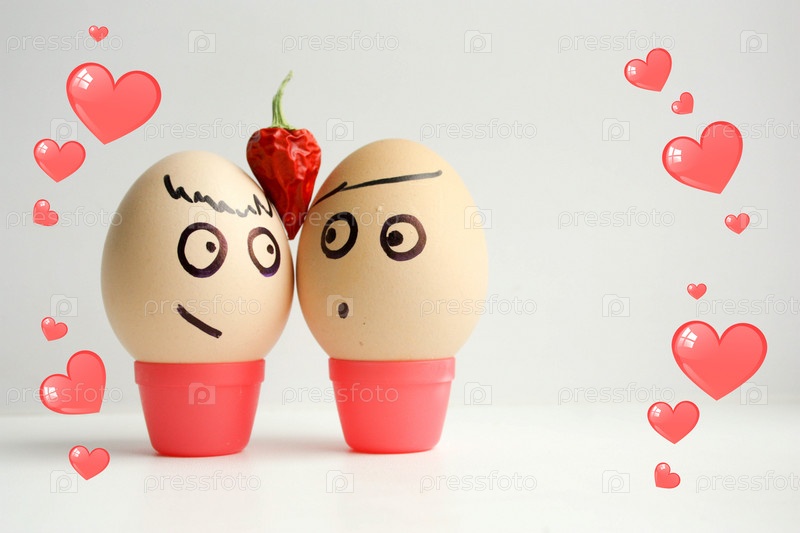 Яйца с нарисованным лицом. Концепция любви