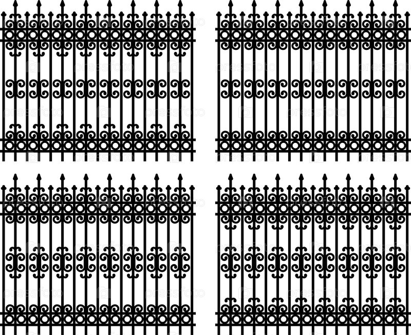 Четыре образца кованого забора на белом фоне