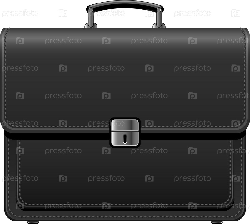 Черный кожаный портфель на белом фоне