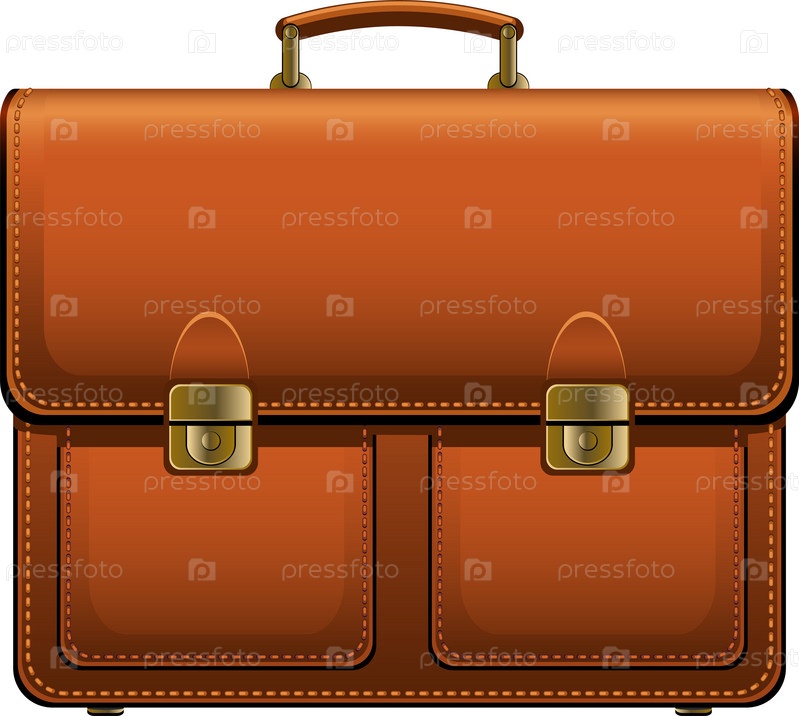Коричневый кожаный портфель на белом фоне
