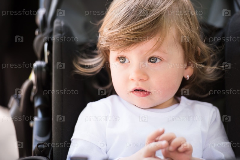 Девочка сидит в коляске