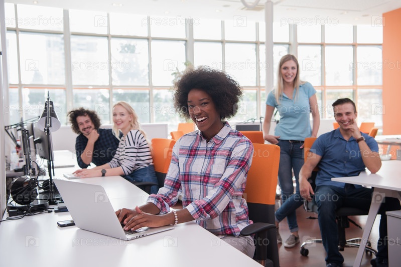 Афро-американская неформальная деловая женщина работает в офисе