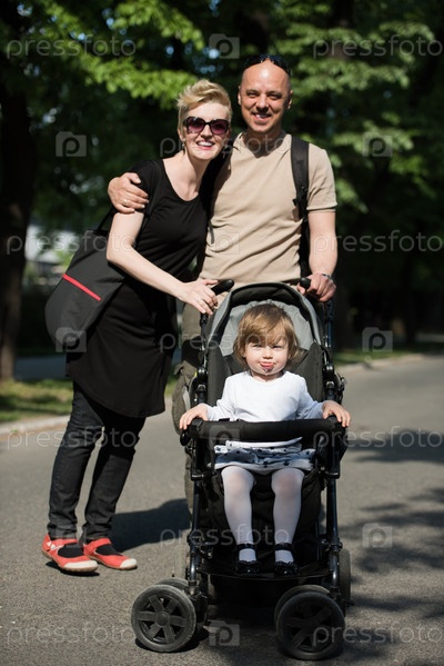 Пара с ребенком в парке летом