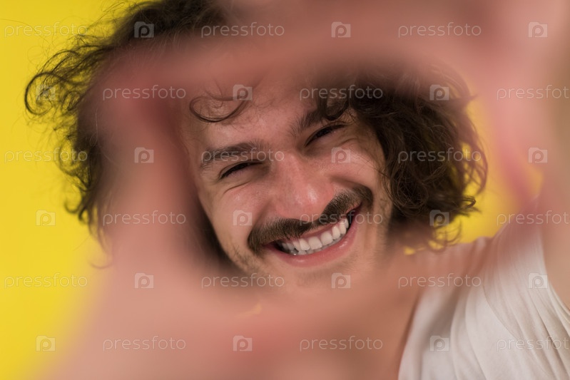 Молодой человек с забавными волосами на цветном фоне