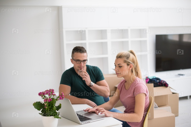 Молодая пара в новом доме