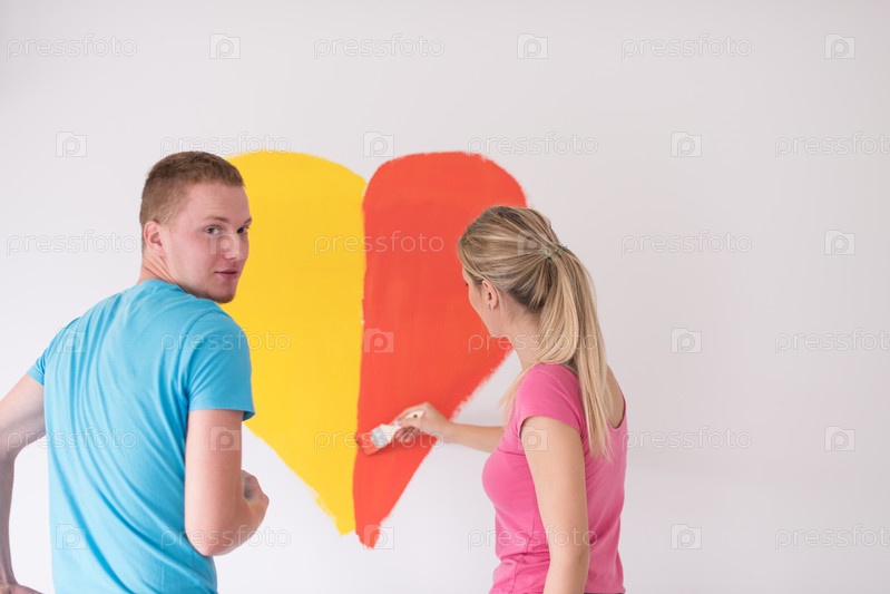 Пара рисует сердце на стене