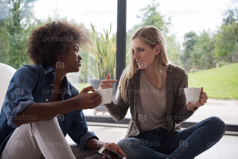 Женщины сидят на полу с кофе