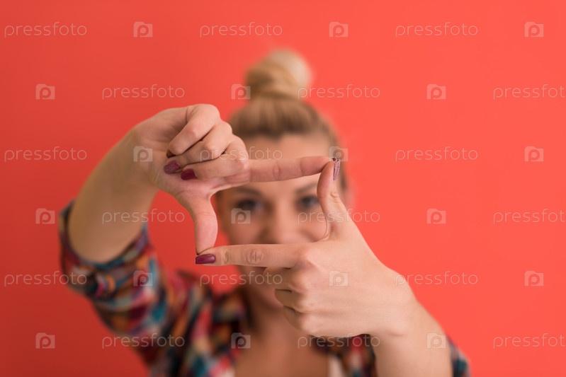 Молодая женщина на цветном фоне