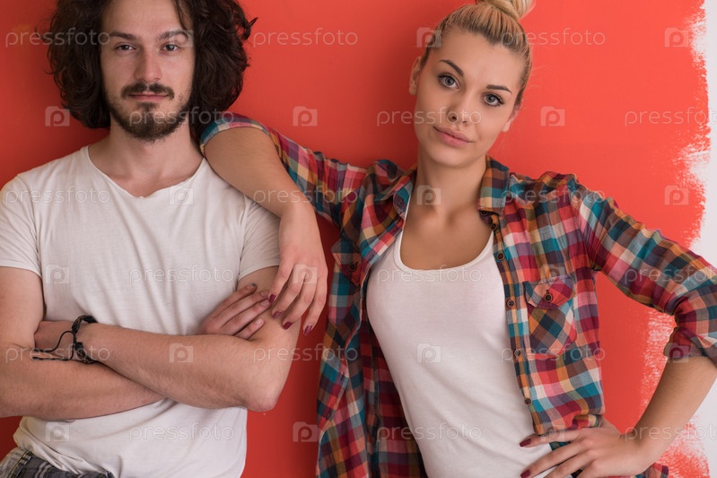 Пара в любви на цветном фоне