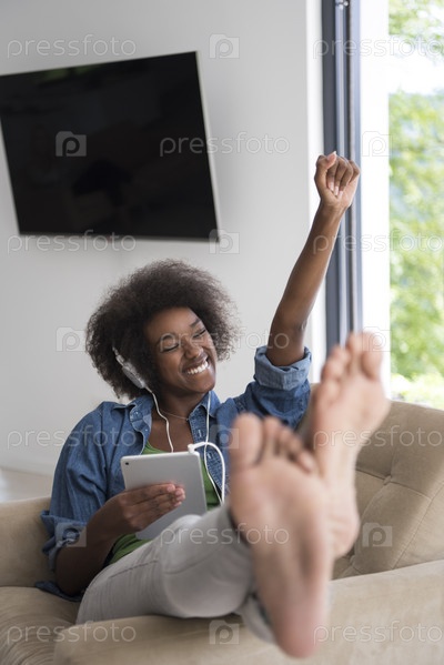 Афроамериканка у себя дома в кресле