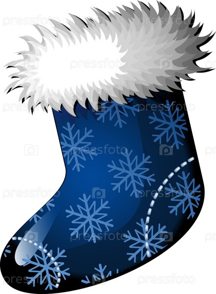 Рождественский носок для подарков на белом фоне