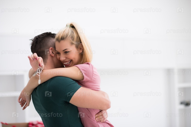 Счастливая молодая пара в новом доме