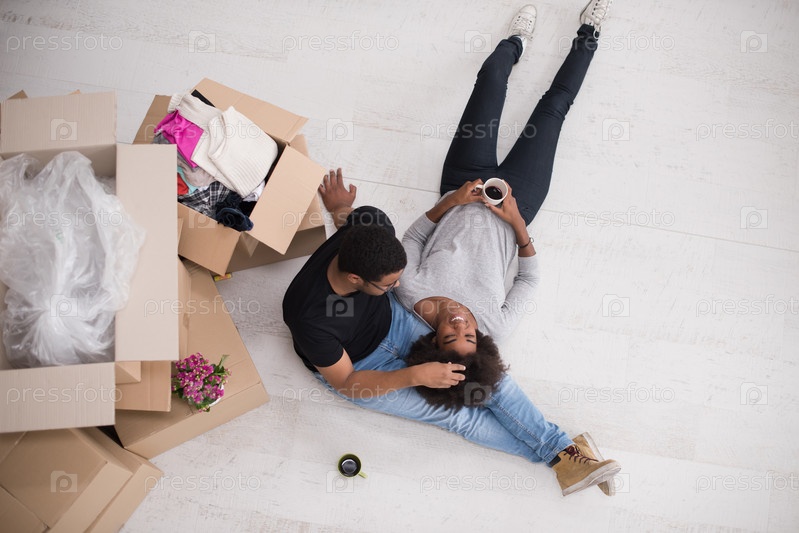 Счастливая молодая пара в новом доме